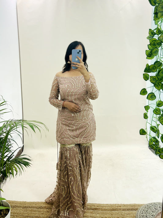 Nude Sequiin Work Suit Garara Set